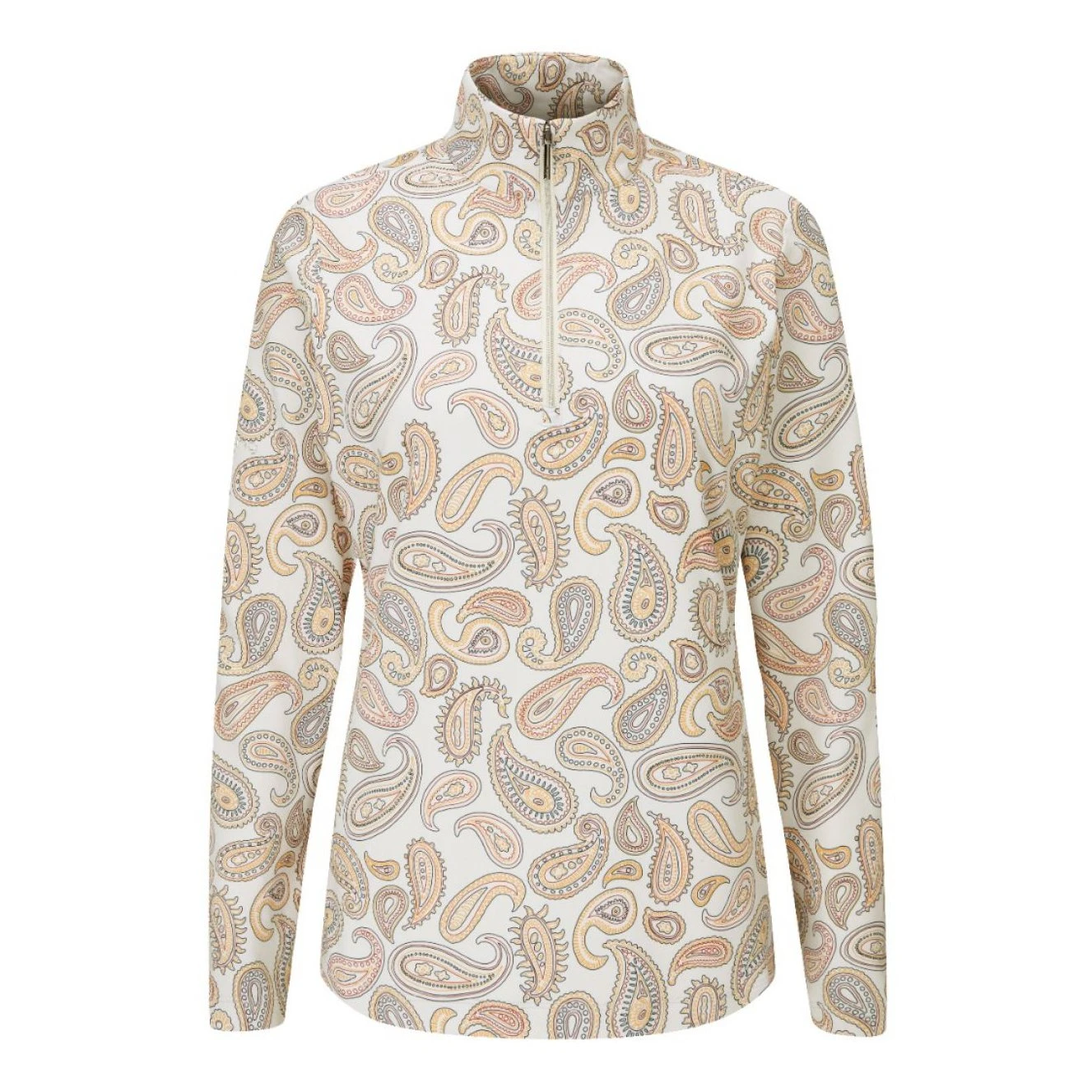 Evangeline midlayers from PING feature a striking all–over paisley print while the materials are incredibly comfortable and provide excellent performance on the golf course. Moisture movement and quick drying properties keep you comfortable, while stretch properties offer freedom of movement.